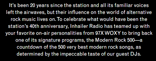 As Jae mentioned in our podcast interview, her radio revival started over Memorial Day weekend in 2023 when nearly three dozen former 97X DJs teamed up Inhailer Radio to broadcast a very special edition of the beloved “Modern Rock 500” as a way to pay tribute to 97X, which came on the air 40 years prior.