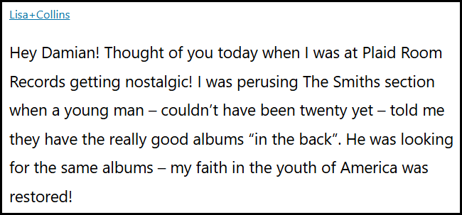 I get positively giddy when artists I like show some love for other artists I like.